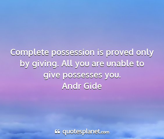 Complete possession is proved only by giving. All you are unable to give possesses you.