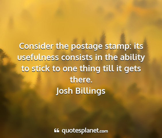 Consider the postage stamp: its usefulness consists in the ability to stick to one thing till it gets there.Josh Billings
