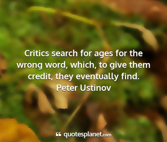 Critics search for ages for the wrong word, which, to give them credit, they eventually find.Peter Ustinov