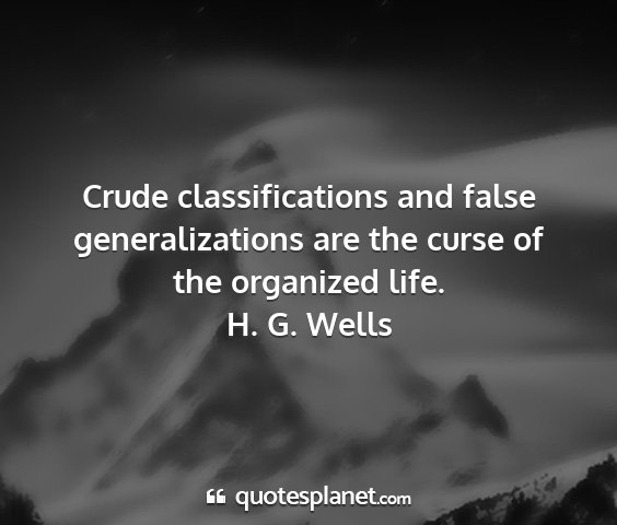 Crude classifications and false generalizations are the curse of the organized life.