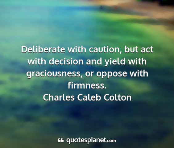 Deliberate with caution, but act with decision and yield with graciousness, or oppose with firmness.Charles Caleb Colton