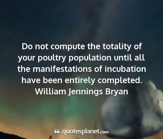 Do not compute the totality of your poultry population until all the manifestations of incubation have been entirely completed.William Jennings Bryan