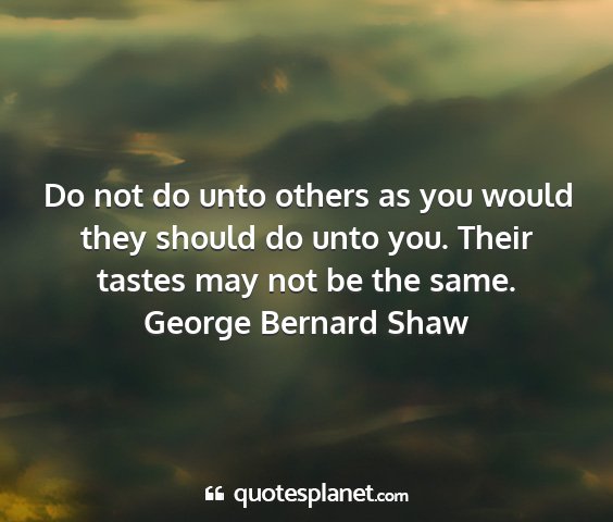 Do not do unto others as you would they should do unto you. Their tastes may not be the same.George Bernard Shaw