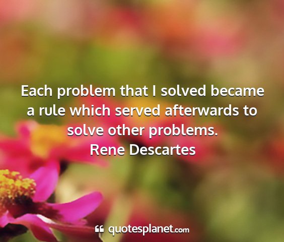 Each problem that I solved became a rule which served afterwards to solve other problems.Rene Descartes
