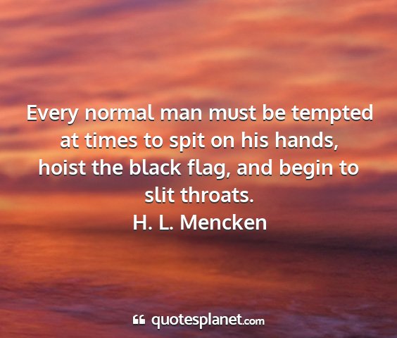 Every normal man must be tempted at times to spit on his hands, hoist the black flag, and begin to slit throats.H. L. Mencken
