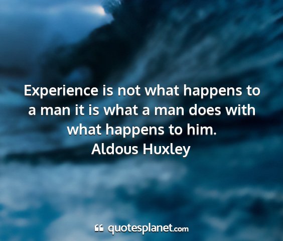 Experience is not what happens to a man it is what a man does with what happens to him.