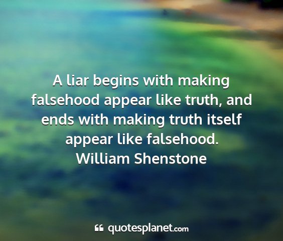 A liar begins with making falsehood appear like truth, and ends with making truth itself appear like falsehood.William Shenstone