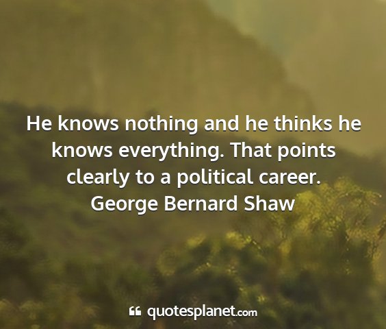He knows nothing and he thinks he knows everything. That points clearly to a political career.George Bernard Shaw