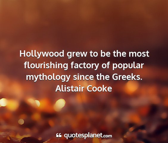 Hollywood grew to be the most flourishing factory of popular mythology since the Greeks.Alistair Cooke
