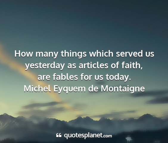 How many things which served us yesterday as articles of faith, are fables for us today.Michel Eyquem de Montaigne