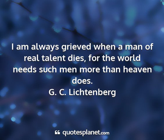 I am always grieved when a man of real talent dies, for the world needs such men more than heaven does.G. C. Lichtenberg