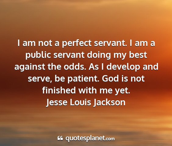 I am not a perfect servant. I am a public servant doing my best against the odds. As I develop and serve, be patient. God is not finished with me yet.Jesse Louis Jackson