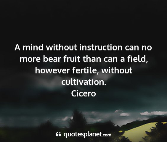 A mind without instruction can no more bear fruit than can a field, however fertile, without cultivation.Cicero