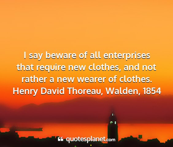 I say beware of all enterprises that require new clothes, and not rather a new wearer of clothes.Henry David Thoreau, Walden, 1854