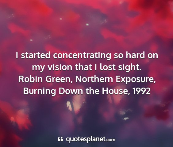 I started concentrating so hard on my vision that I lost sight.Robin Green, Northern Exposure, Burning Down the House, 1992