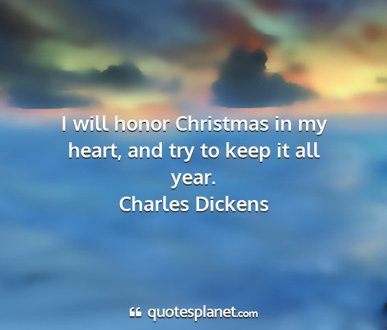 I will honor Christmas in my heart, and try to keep it all year.