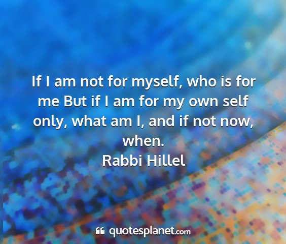 If I am not for myself, who is for me But if I am for my own self only, what am I, and if not now, when.Rabbi Hillel