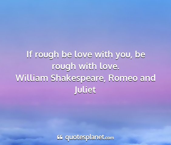If rough be love with you, be rough with love.