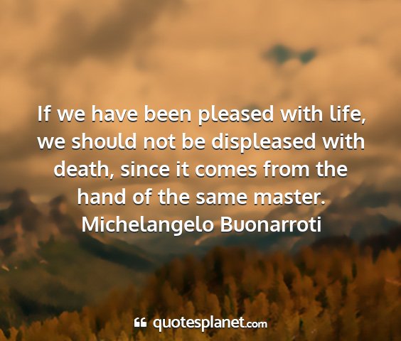 If we have been pleased with life, we should not be displeased with death, since it comes from the hand of the same master.Michelangelo Buonarroti