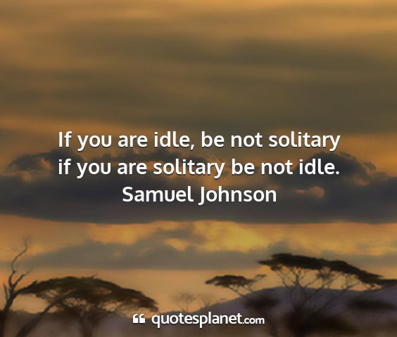 If you are idle, be not solitary if you...